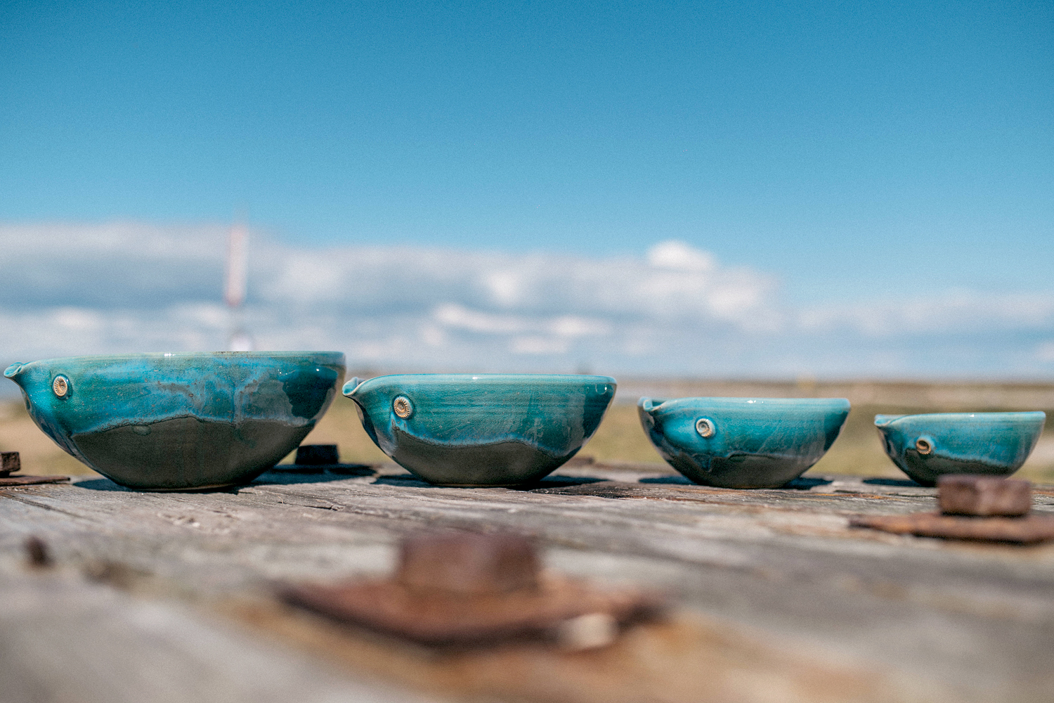 Die von uns gestaltete Gebrauchskeramik hat einen hohen Nutzwert bei gleichzeitig hohem Anspruch an das Design. Unsere selbst entwickelten Glasuren tragen die Namen der Meere und sind von diesen inspiriert. So stehen in unserem an die Werkstatt angrenzenden Laden die Ostsee neben der Nordsee, dem Pazifik, der Südsee und dem schwarzen Meer .