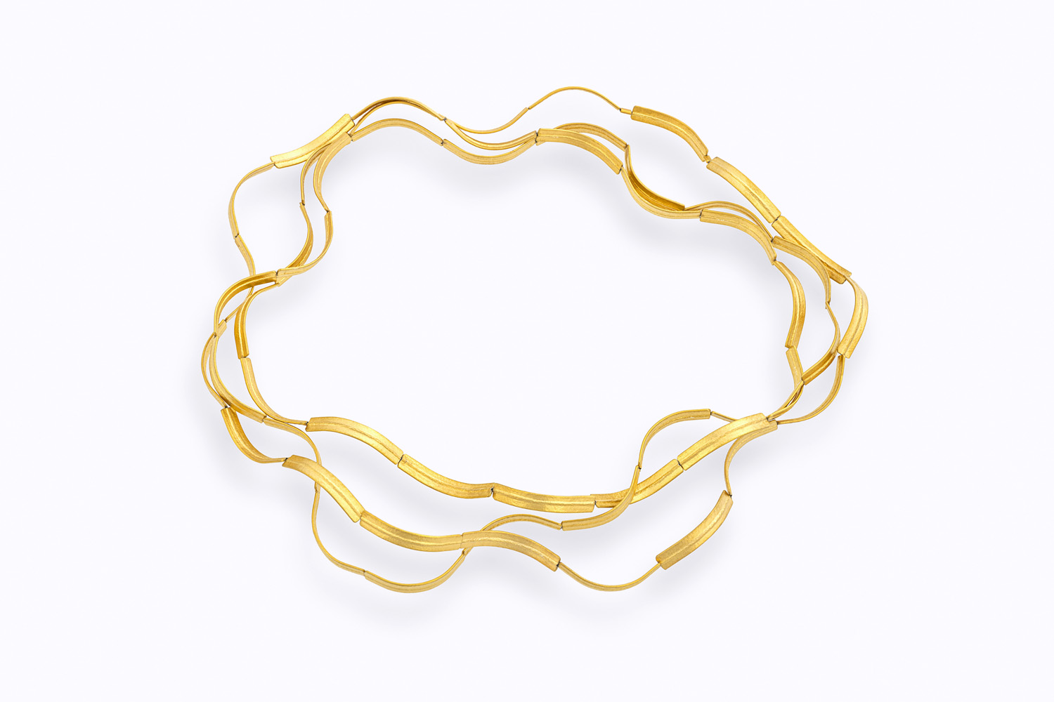 Die Gestaltungslinien der Schmuckkollektion orientieren sich an einfachen Grundformen, die sich durch Reihung oder dreidimensionale Anordnung zu interessanten schlichten und eleganten Schmuckstücken fügen. Der Schmuck wird in kleinen Serien aus Feinsilber oder aus Feinsilber plattiert mit Feingold handgefertigt. In der Kombination mit Stahlseil entsteht ein spannungsreicher Kontrast von Form und Linie. Die Tragbarkeit der Schmuckentwürfe, unkompliziert und variabel, steht bei der Gestaltung im Vordergrund. Mit dieser Leitlinie hat sich das Design über die Jahre in großer Kreativität und Vielfalt entwickelt.