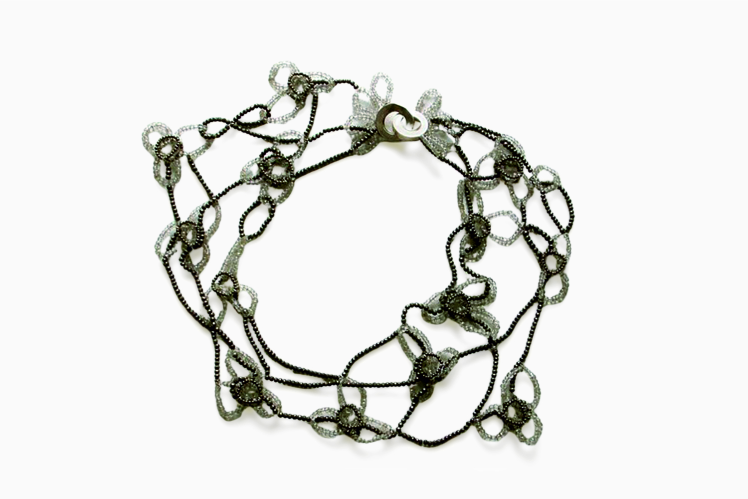 Der zeichnerische Aspekt drängt in den Vordergrund. Der Einsatz von farbigen, sehr dünnen Edelsteinsträngen, meist Zirkon, ermöglicht zeichnerische Elemente und farbige Linienführung. In rhythmischer Kombination mit anderen Materialien lassen sich Melodien, Geschichten, Begriffe darstellen. Die Objekte werden optisch und materiell leichter, luftiger, schwebend.