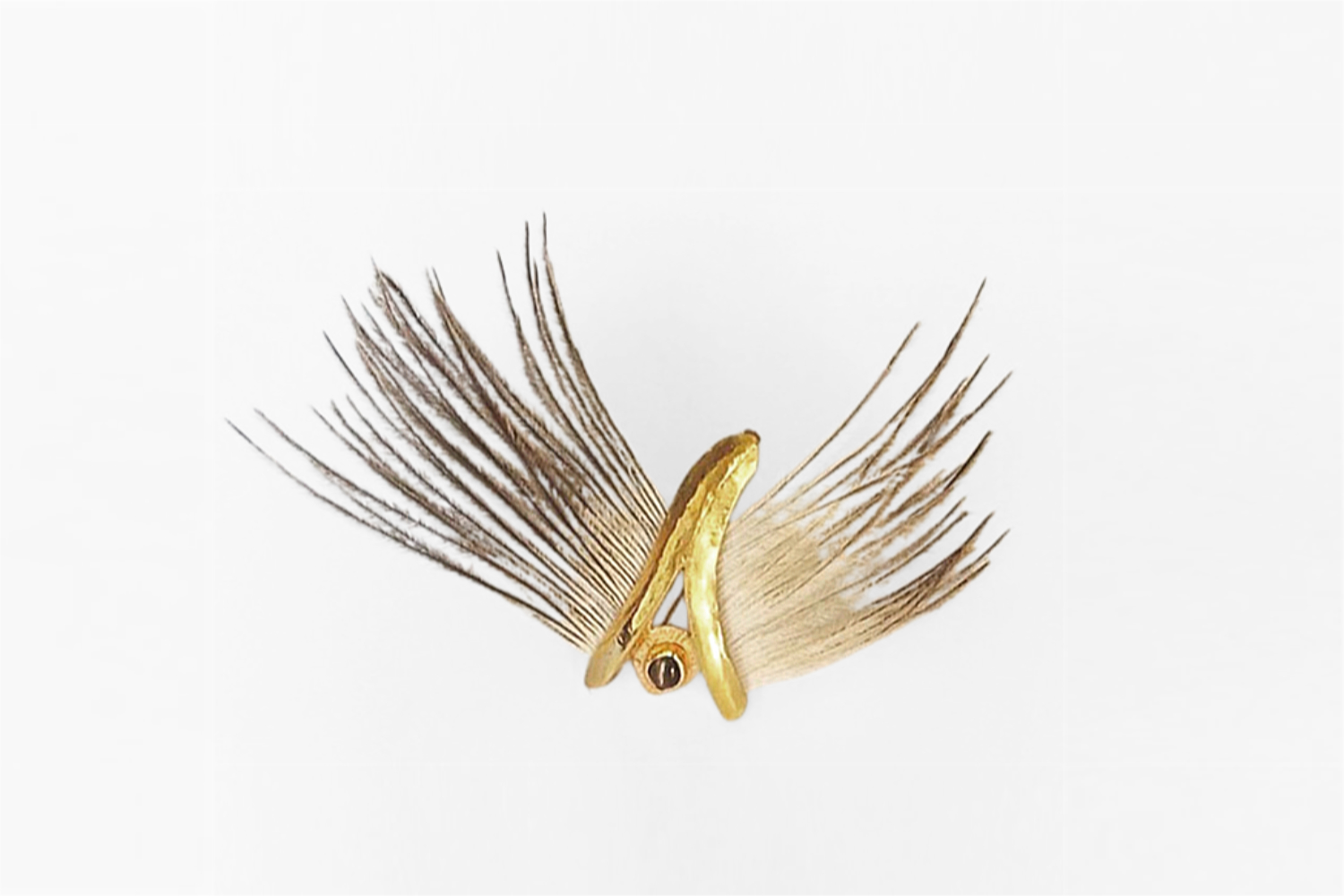 Der Vogel Roch, Brosche, Gold 750/000, Chrysoberyll - Katzenauge, Straußenfeder